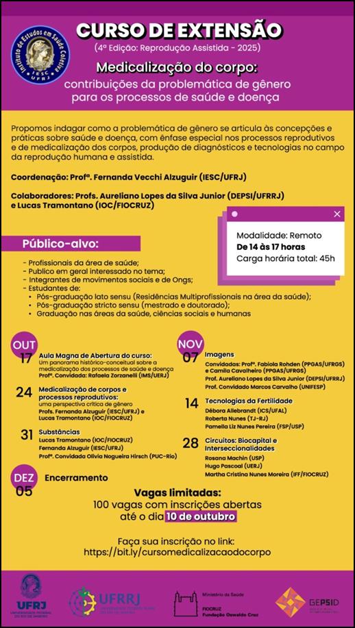 Curso de Extensión “Medicalización del cuerpo: contribuciones de la problemática de género a los procesos de salud y enfermedad” (4ª Edición 2025 – Reproducción Asistida)