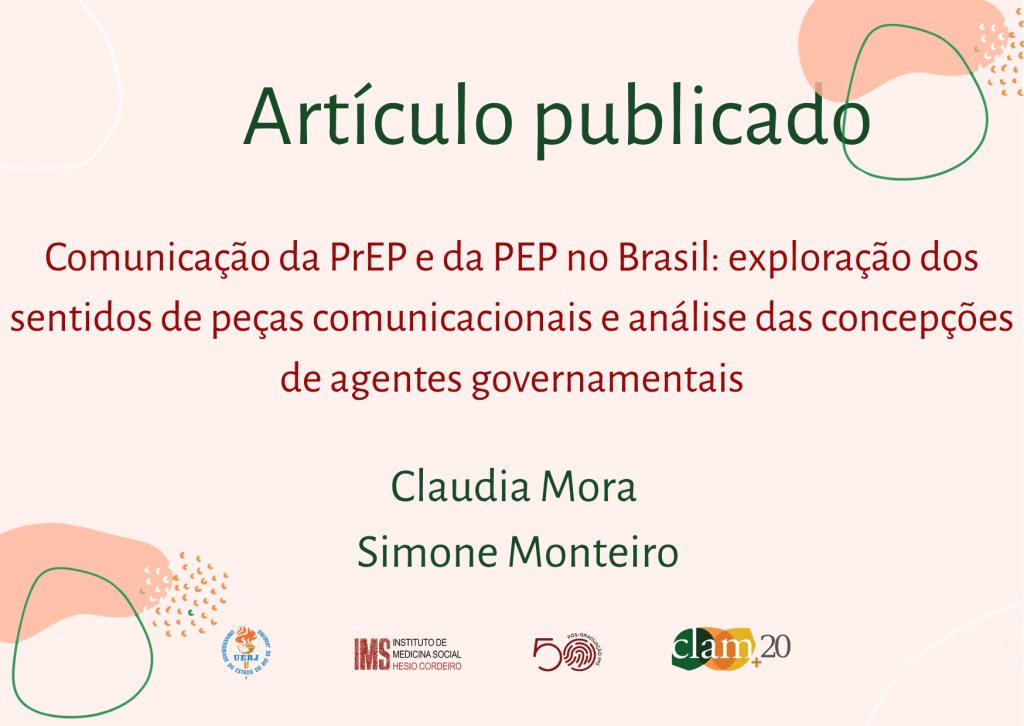As investigadoras Claudia Mora (CLAM/IMS/UERJ) y Simone Monteiro (IOC/FIOCRUZ) publicaron el artículo “Comunicación de la PrEP y la PEP en Brasil: exploración de los sentidos de piezas comunicacionales y análisis de las concepciones de agentes gubernamentales”, en la Revista Cadernos de Saúde Pública, vinculada a la Escuela Nacional de Salud Pública Sergio Arouca, de la Fundación Oswaldo Cruz (ENSP/Fiocruz), Río de Janeiro.